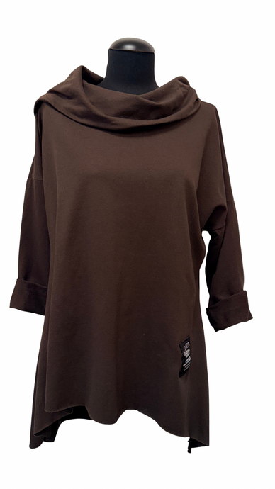 Krajša asimetrična bombažna tunika v A kroju, UNI velikost do 48, ČOKOLADNA