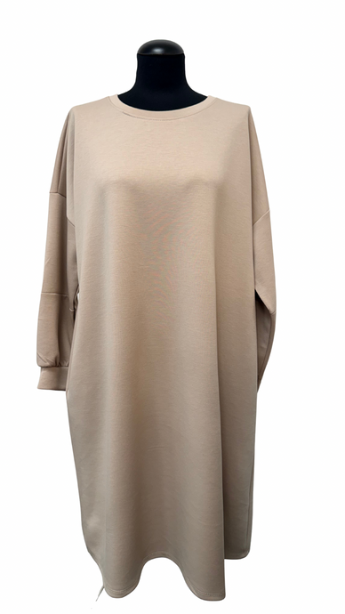 Daljša debelejša tunika ali krajša obleka, UNI velikost do 50/52 ZAMOLKLO KREM