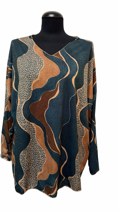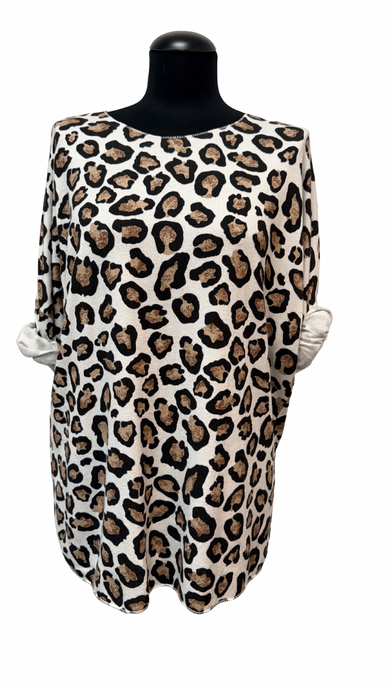 Krajša tunika, pletenina, UNI vel. do 48, KREM Z ŽIVALSKIM VZORCEM