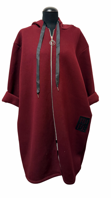 Daljša, topla, kosmatena jopa, UNI velikost do 52, BORDO
