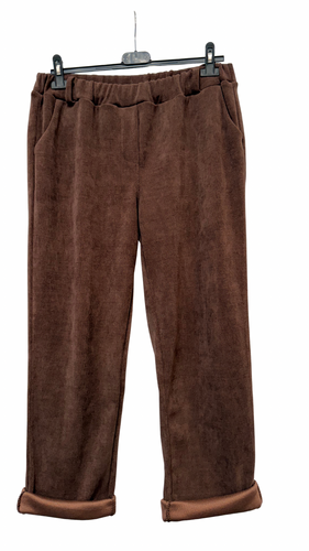 Elastične in udobne hlače, raztegljiv žamet, UNI vel. do 46/48, ČOKOLADNE
