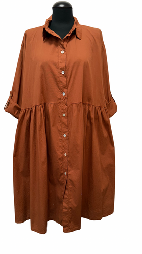 Krajša srajčna obleka ali tunika, UNI vel. do 52, KARAMELA