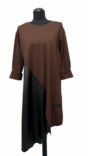 Kompaktna asimetrična obleka ali tunika v rahlem A kroju, UNI vel do št. 50, TEMNA ČOKOLADA