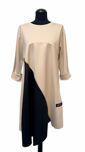 Kompaktna asimetrična obleka ali tunika v rahlem A kroju, UNI vel do št. 50, KREM