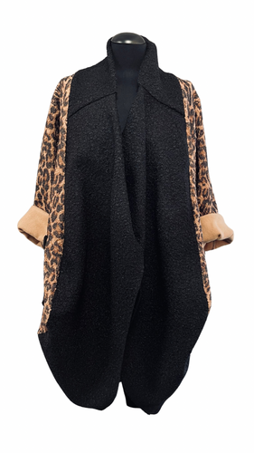 Nepodložen plašč v kroju balončice, UNI velikost do 48/50/52, CIMET Z ŽIVALSKIM VZORCEM