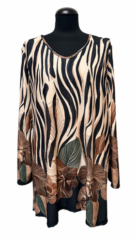 Elegantna tunika iz mešanice viskoze UNI št. do 50-52, KREM S ČRNIMI ODTENKI
