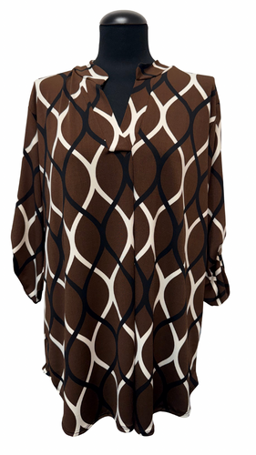 Krajša tunika, UNI vel. do 50/52, TEMNO ČOKOLADNA Z BELIM IN ČRNIM VZORCEM