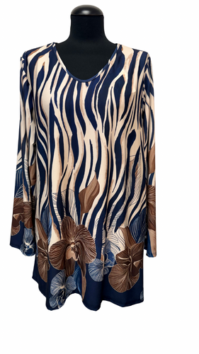 Elegantna tunika iz mešanice viskoze UNI št. do 50-52, KREM S TEMNO MODRIMI ODTENKI