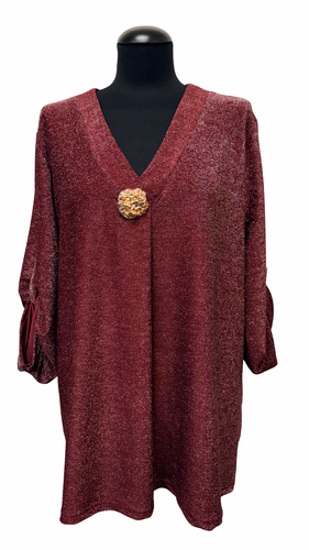 Udobna, elastična tunika, UNI velikost do 52/54, BORDO Z BLEŠČEČIMI NITMI