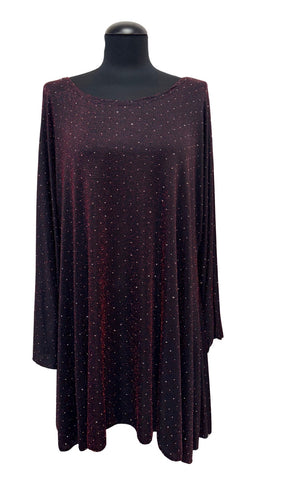 Daljša, elastična tunika, v izrazitem A kroju, UNI velikost do 54/56, ČRNO RDEČKASTA S KRISTALČKI