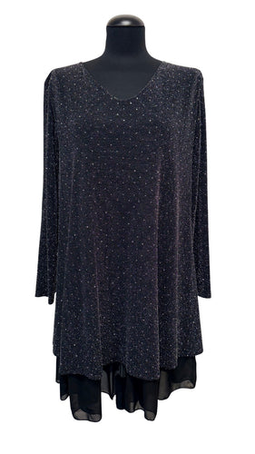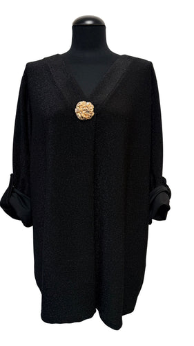 Udobna, elastična tunika, UNI velikost do 52/54, ČRNA Z BLEŠČEČIMI NITMI