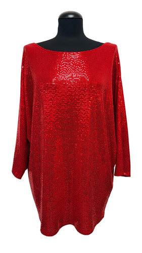 Udobna, elastična tunika, metuljast kroj, UNI velikost do 48, RDEČA Z BLEŠČICAMI