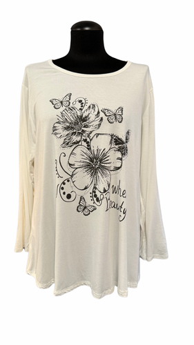 Tunika v A kroju, dolg rokav, UNI velikost do 52, ČRNO BELA