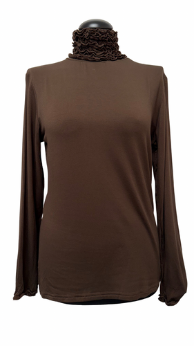 Puli z nabranim ovratnikom, UNI vel. do 46, TEMNA ČOKOLADA