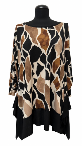 Tunika v A kroju, dolg rokav, UNI velikost do 52, ČRNA IN CIMET