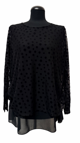 Raztegljiva tunika, prosojni rokavi, A kroj, UNI št. do 48, ČRNA S PIKAMI