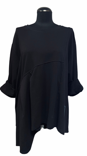 Asimetrična krajša tunika, UNI velikost do 48/50, ČRNA