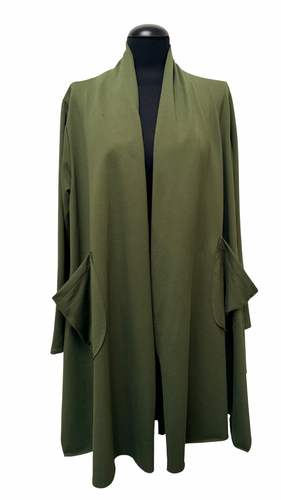 Bombažna asimetrična jopa z zunanjimi žepi, UNI velikost do 52/54, OLIVNA