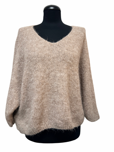 Krajši pleten pulover, UNI vel. do 48, KAPUČINO