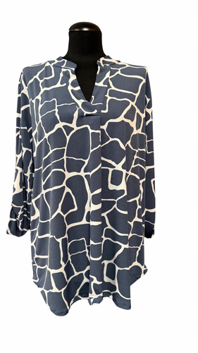 Krajša tunika, UNI vel. do 50/52, JEANS MODRA Z BELIM VZORCEM