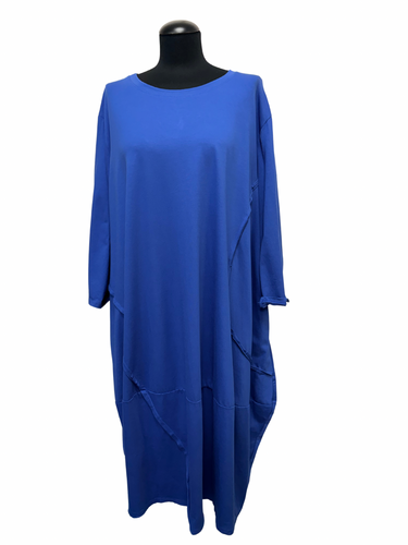 Dolga bombažna obleka v kroju balončice, UNI velikost do 52/54/56, MODRA