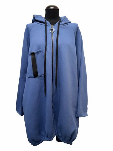 Daljša, topla, kosmatena jopa, UNI velikost do 48/50, MODRA