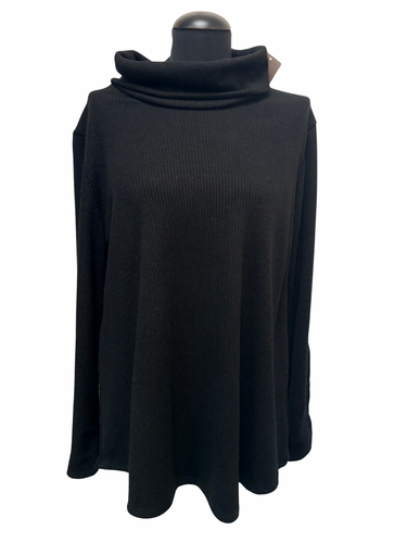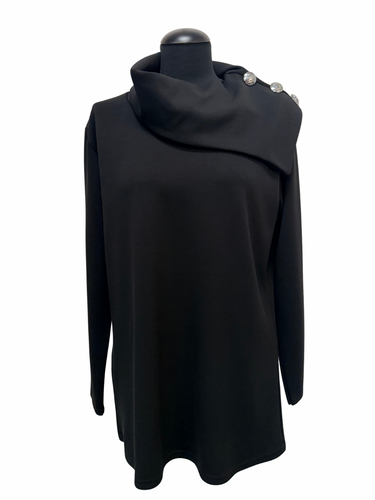 Debelejša tunika, raven kroj, visok ovratnik, UNI velikost do 48, ČRNA