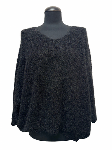 Krajši pleten pulover, UNI vel. do 48, ČRN
