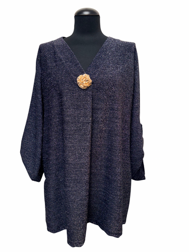 Udobna, elastična tunika, UNI velikost do 52/54, TEMNO MODRA Z BLEŠČEČIMI NITMI