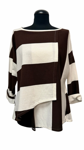 Asimetrična tunika, 158C, A kroj, UNI velikost do 48/50, ČRTASTA, ČOKOLADA SMETANA