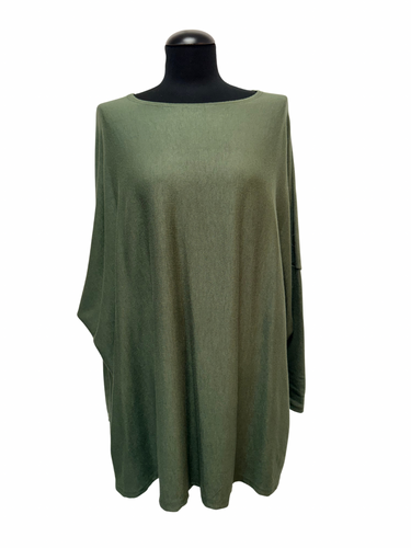 Tunika, pletenina, raven kroj, UNI vel. do 52/54, OLIVNA