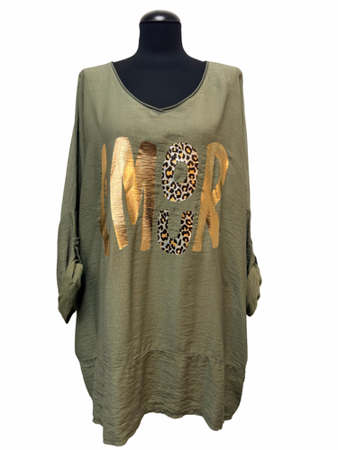 Asimetrična debelejša tunika, UNI velikost do 52, OLIVNA